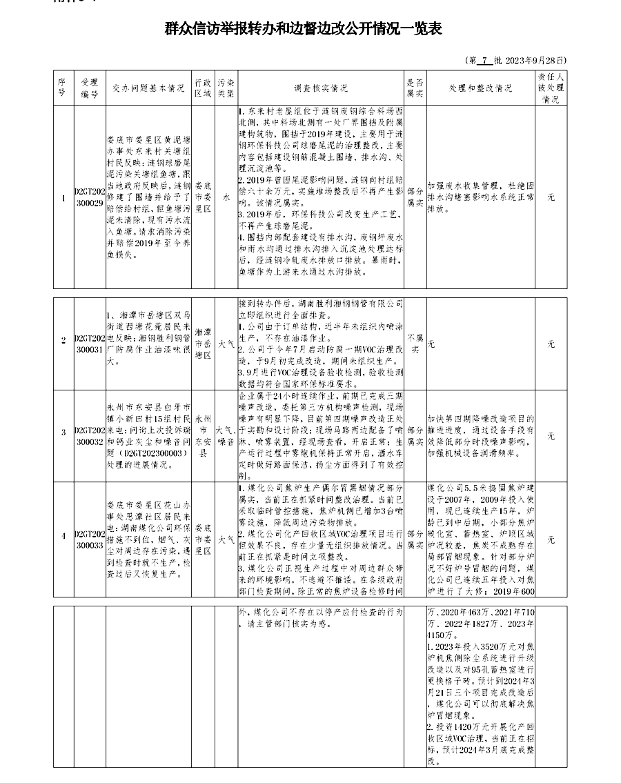 湖南鋼鐵集團進行督查督辦,調(diào)查核實,要求子公司對不屬實部分進行說明、對屬實問題立整立改。現(xiàn)將第七批信訪舉報轉(zhuǎn)辦件辦理情況公示如下:
